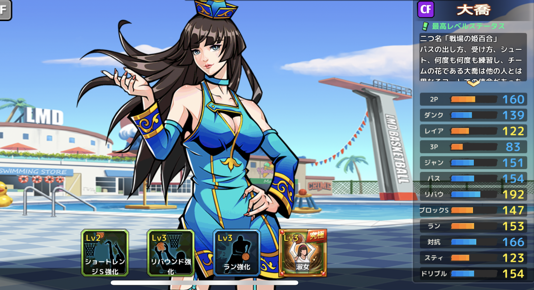 動きも速く、3Pのシュートもそこそこ入りパス値も高い選手が多い。ただこちらも対抗値が低いのでドリブル時は体を当てられないように注意しよう( ̄^ ̄)
